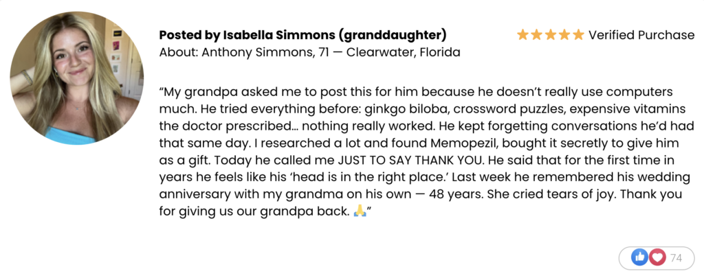 Try Memopezil today — a powerful, natural formula developed with 5 essential nutrients chosen to support brain performance, enhance memory, and help you regain mental clarity and focus.